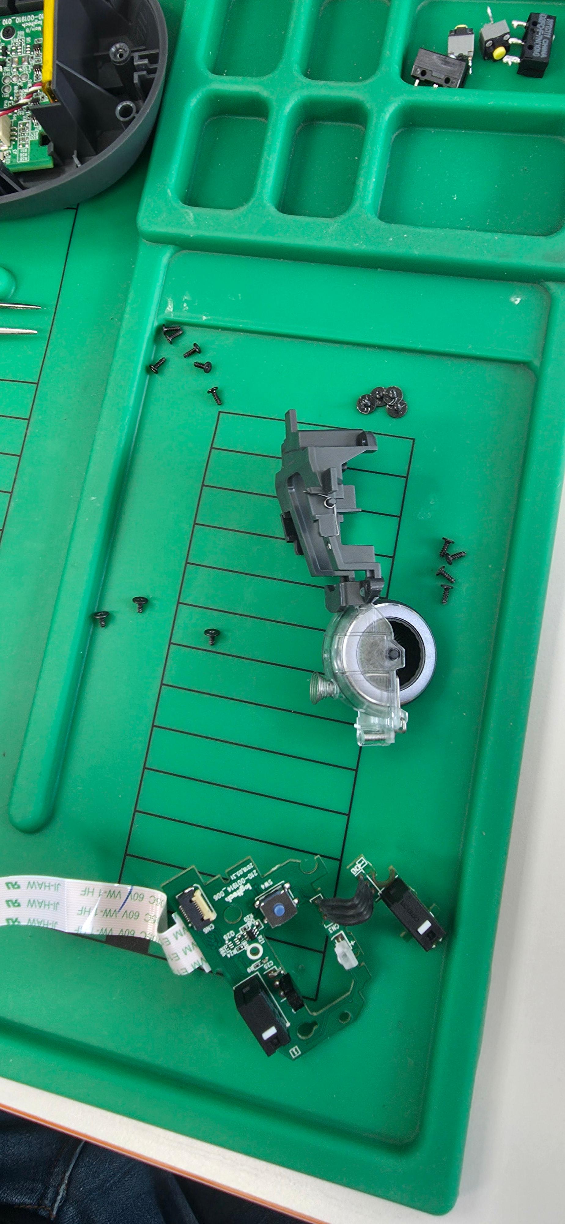 스위치를 교체해준뒤에 역순으로 조립을 해줍니다. PC에 연결한뒤 좌우클릭,휠스크롤등의 기능들을 테스트해봅니다.