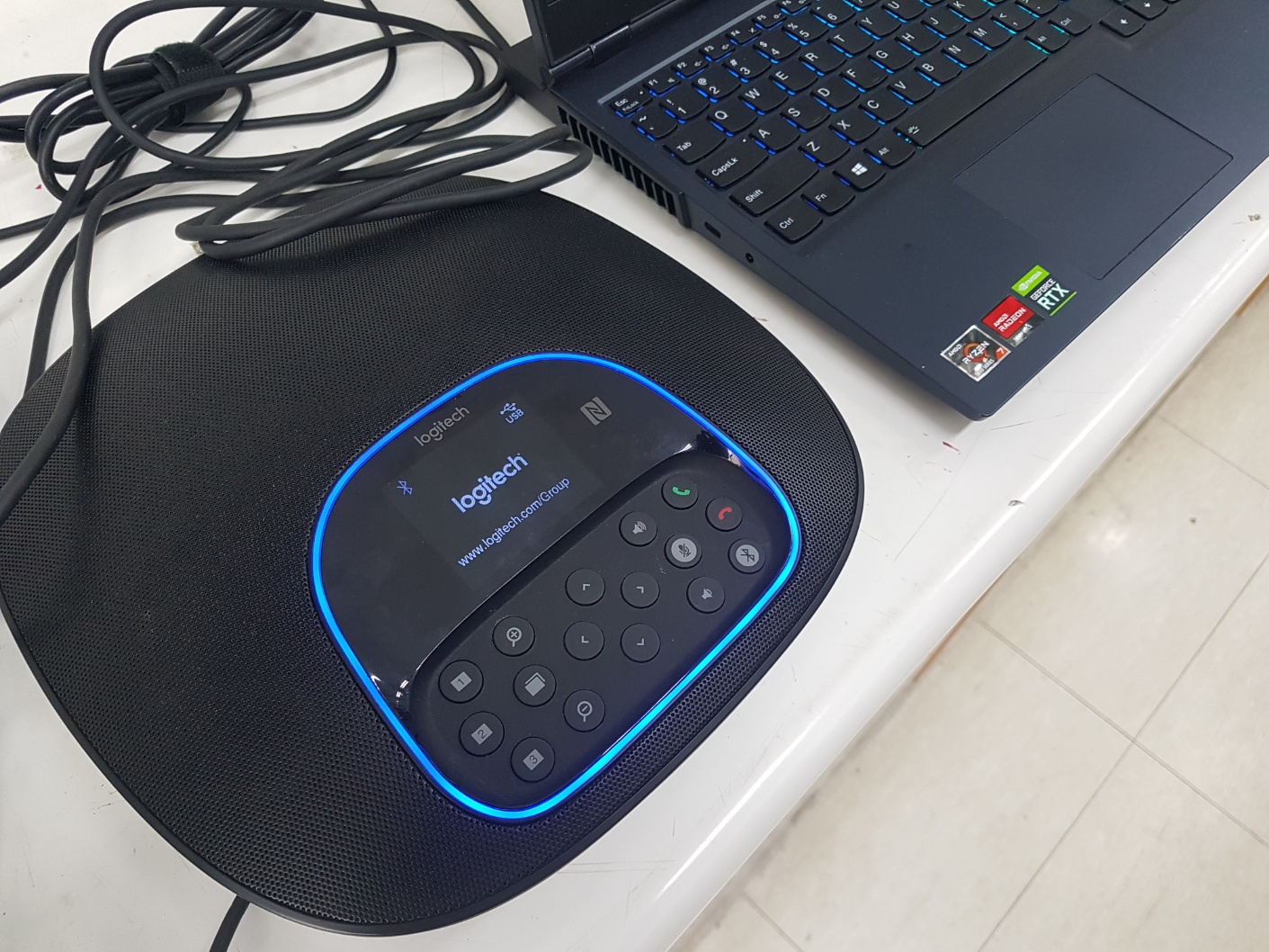 로지텍 그룹 화상회의 시스템중 스피커폰과 여러 상태를 표시해주는 장비가 전원이 안들어온다