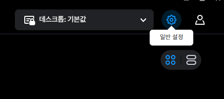 그후 우측상단의 일반설정을(톱니바퀴모양)클릭
